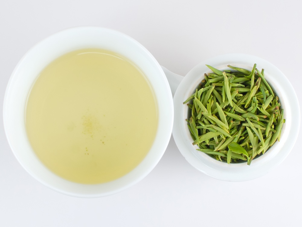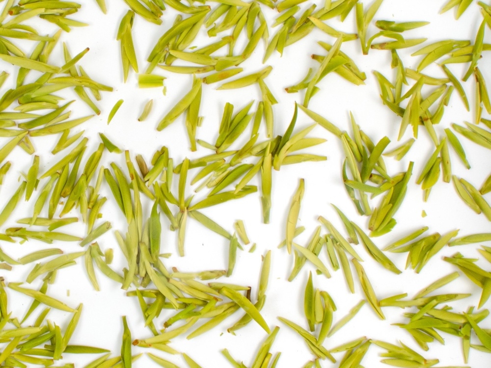 Only experienced makers can make this tea by the traditional process: frying the buds when the wok temperature is just right, gently working the tea to maintain the uniform shape and green color while they develop the fresh, spring vegetable sweetness of the tea buds without burning them. During the frying process, the fuzzy white down of the bud is pressed off of the buds, making each one glossy and green, like a fresh young bamboo shoot, thus giving the tea its name.