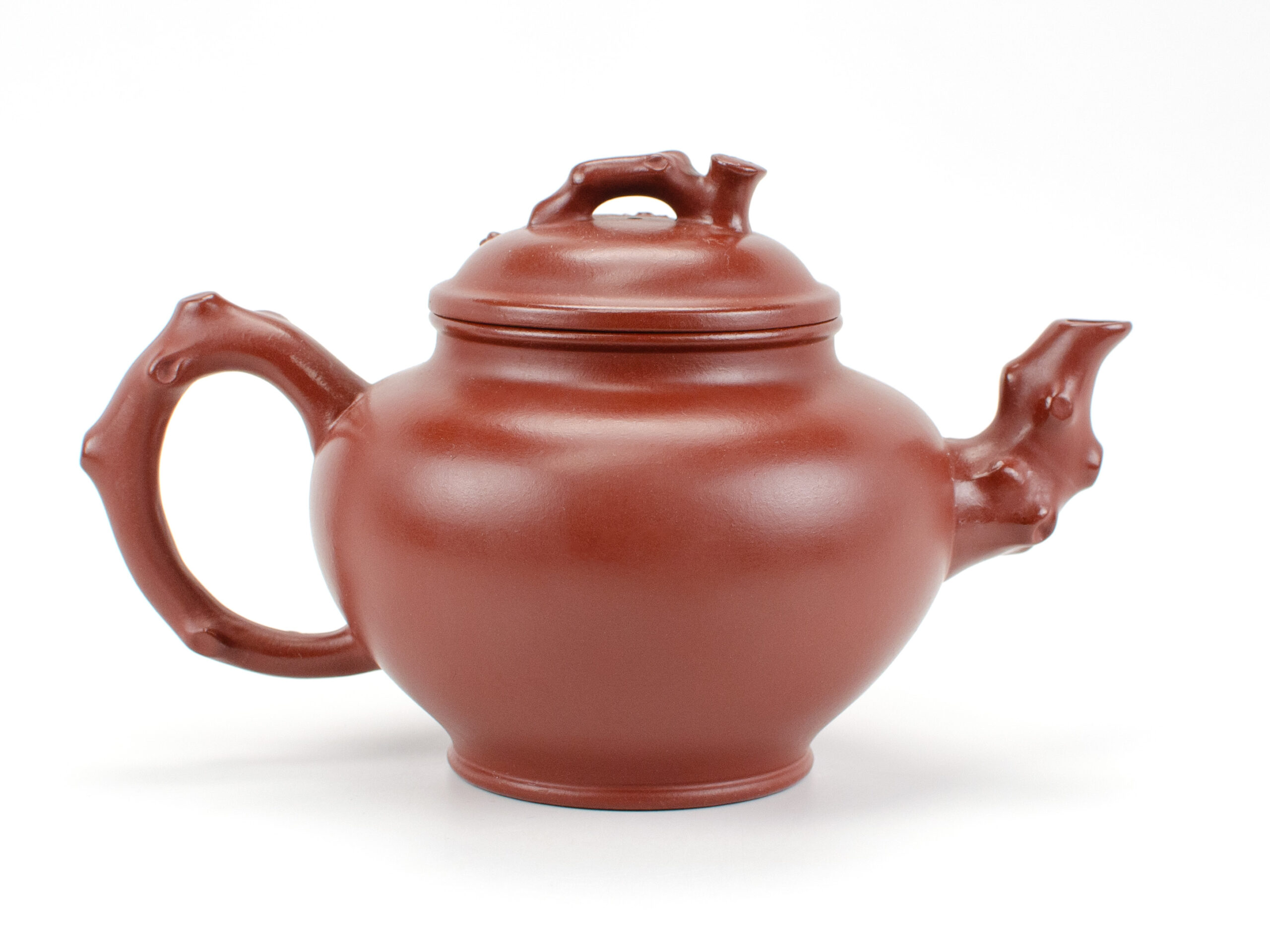 A massive and stately Yixing teapot with nothing to hide and everything to give, this tree-branch teapot was made to impress. With a large capacity well suited to brewing tea for the whole group and dramatic sculpture to capture the eye, this is your yixing pot to bring out at gatherings.